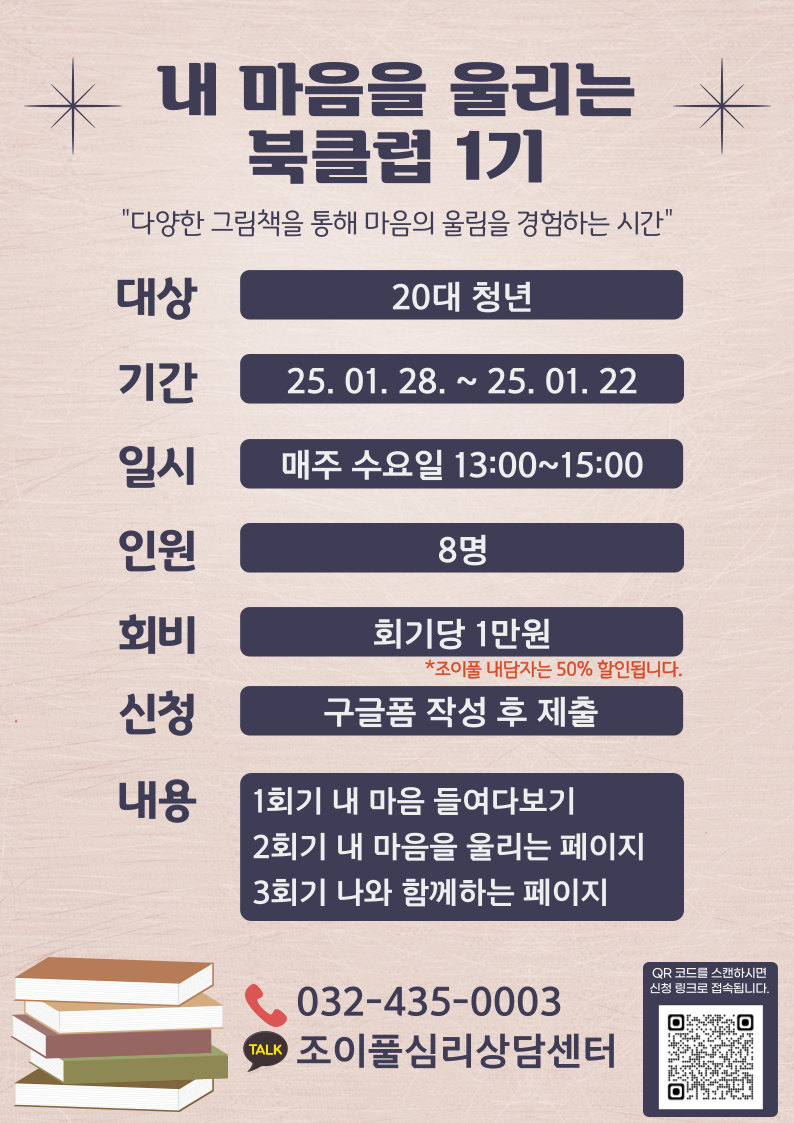 조이풀에서 청년분들을 대상으로 "책"을 주제로 한 집단상담을 실시할 계획입니다.